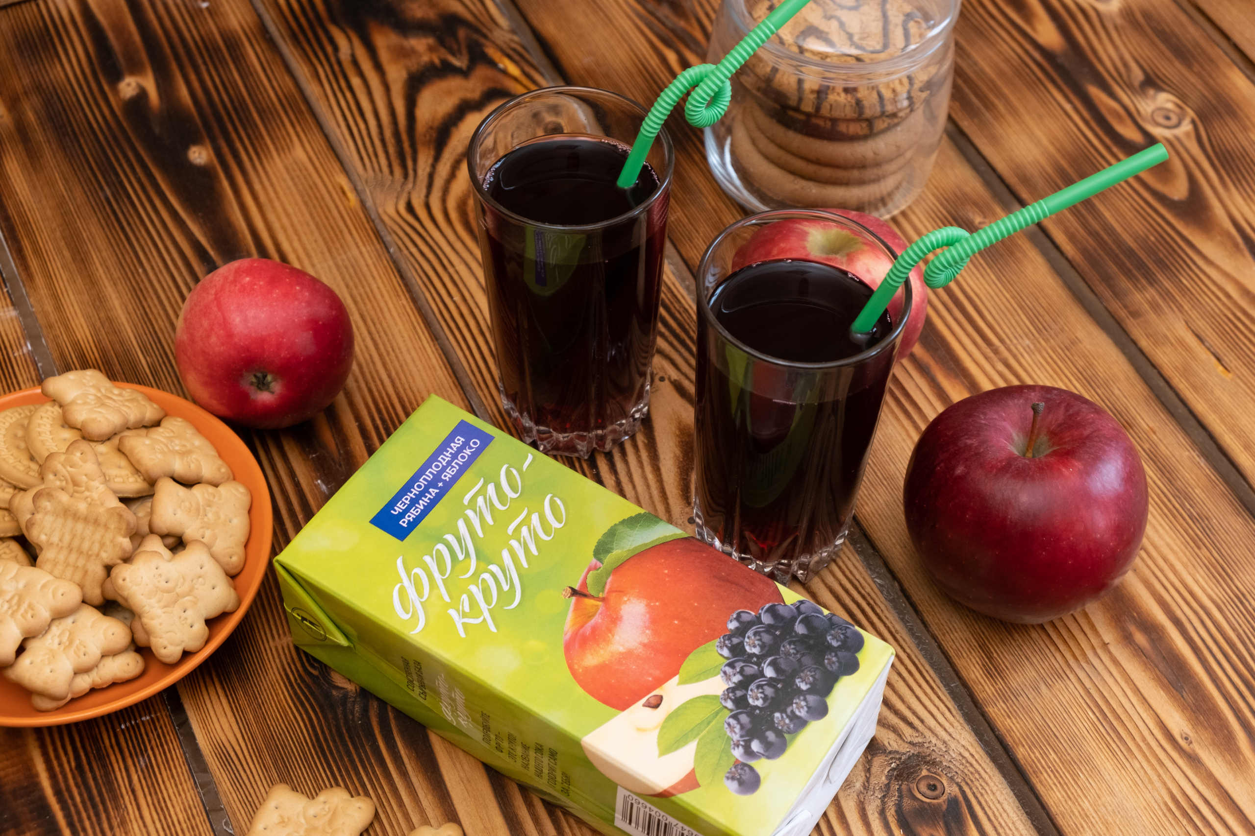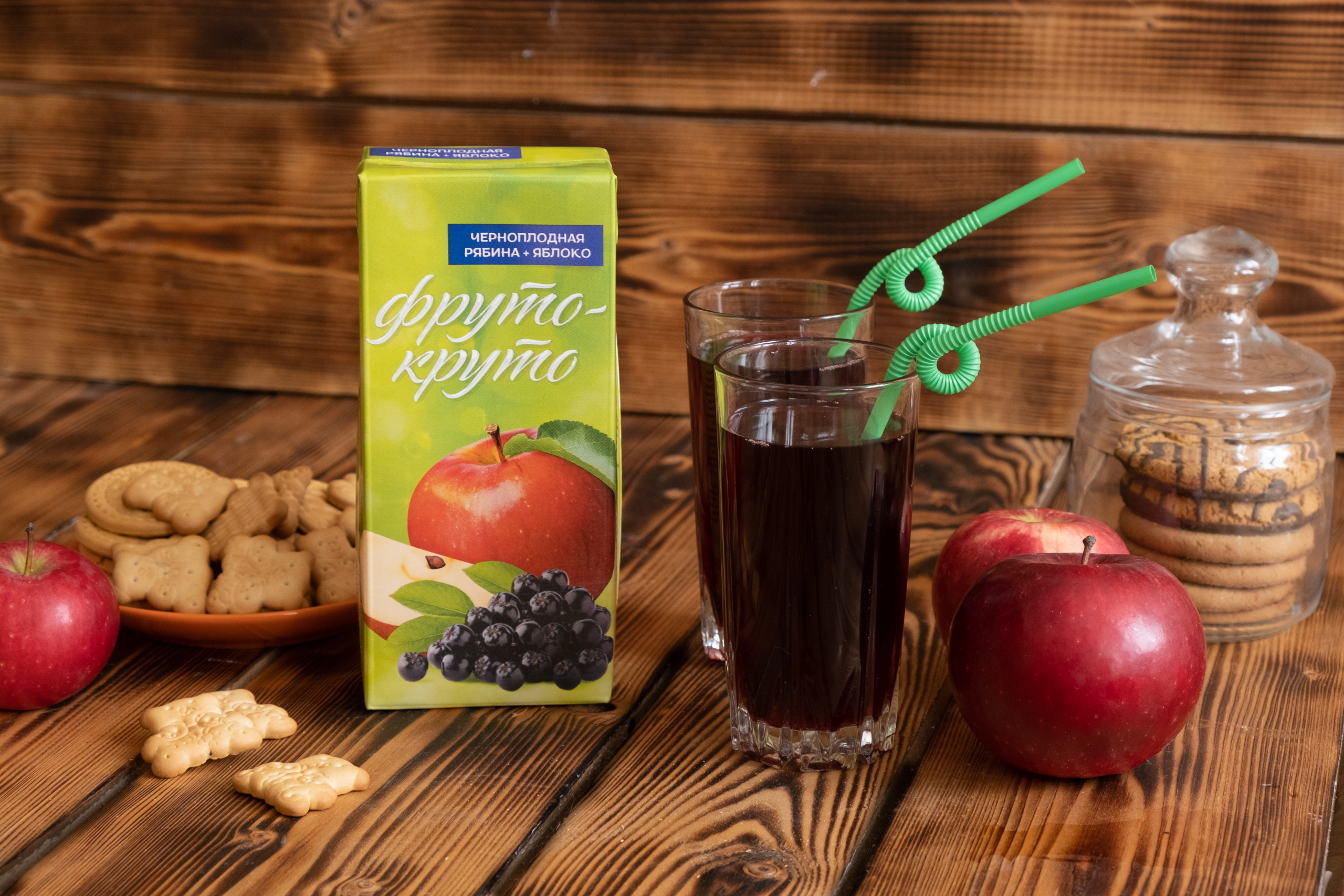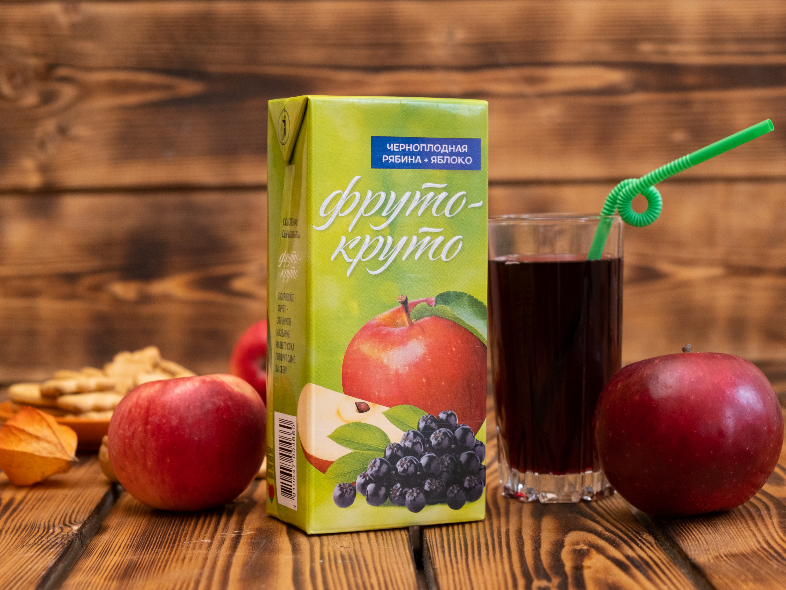 Для падрыхтоўкі соку мы выкарыстоўваем толькі яблыкі і чарнаплодную рабіну з нашага саду, а тэхналогія прамога адціскання дапамагае захаваць усю карысць садавіны і ягад.