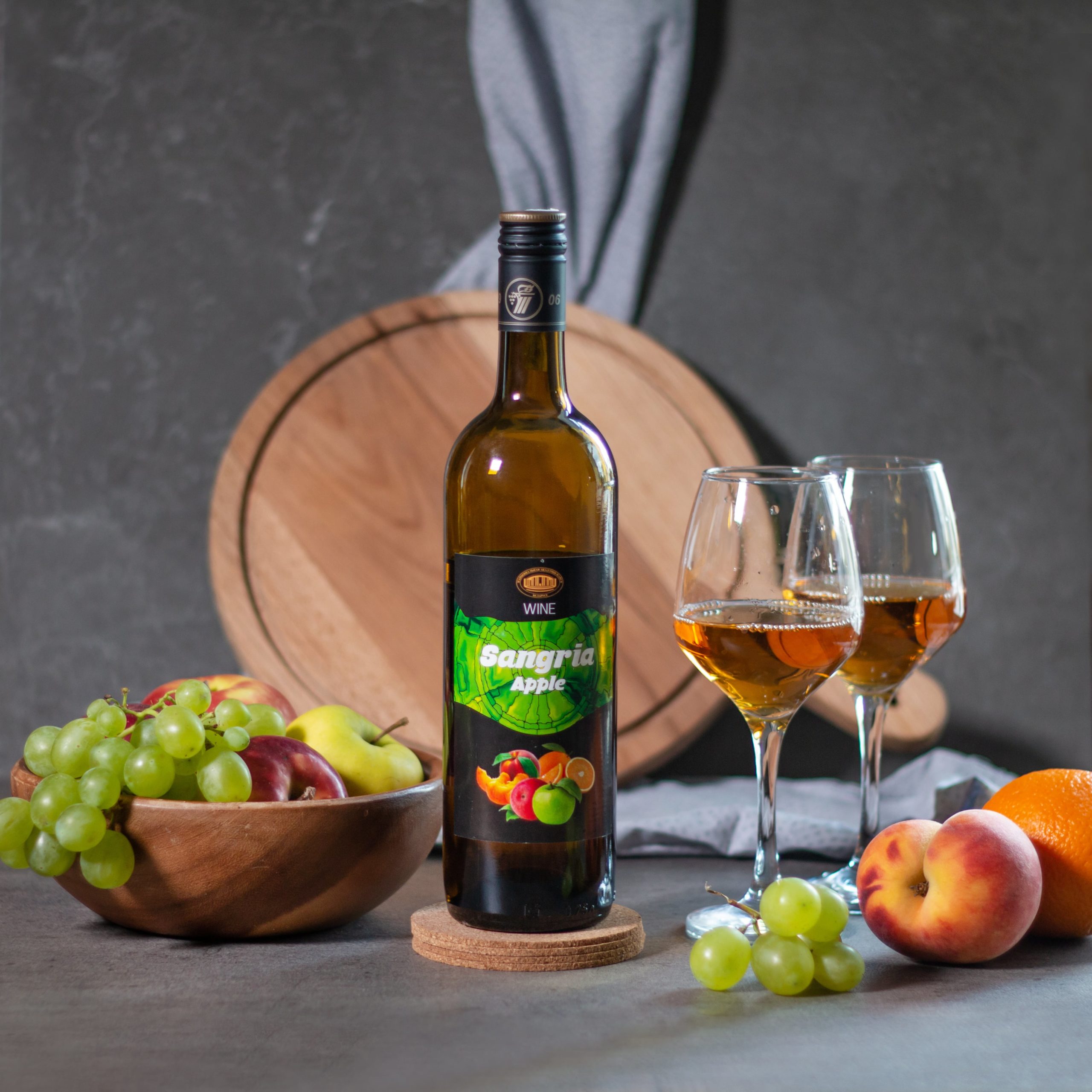 Састаў: 100% яблычнага вінаматэрыялу. Фруктова-цытрусавы экстракт. Алкаголь: 9,0-13,0% аб. Цукар: 70 г / л.