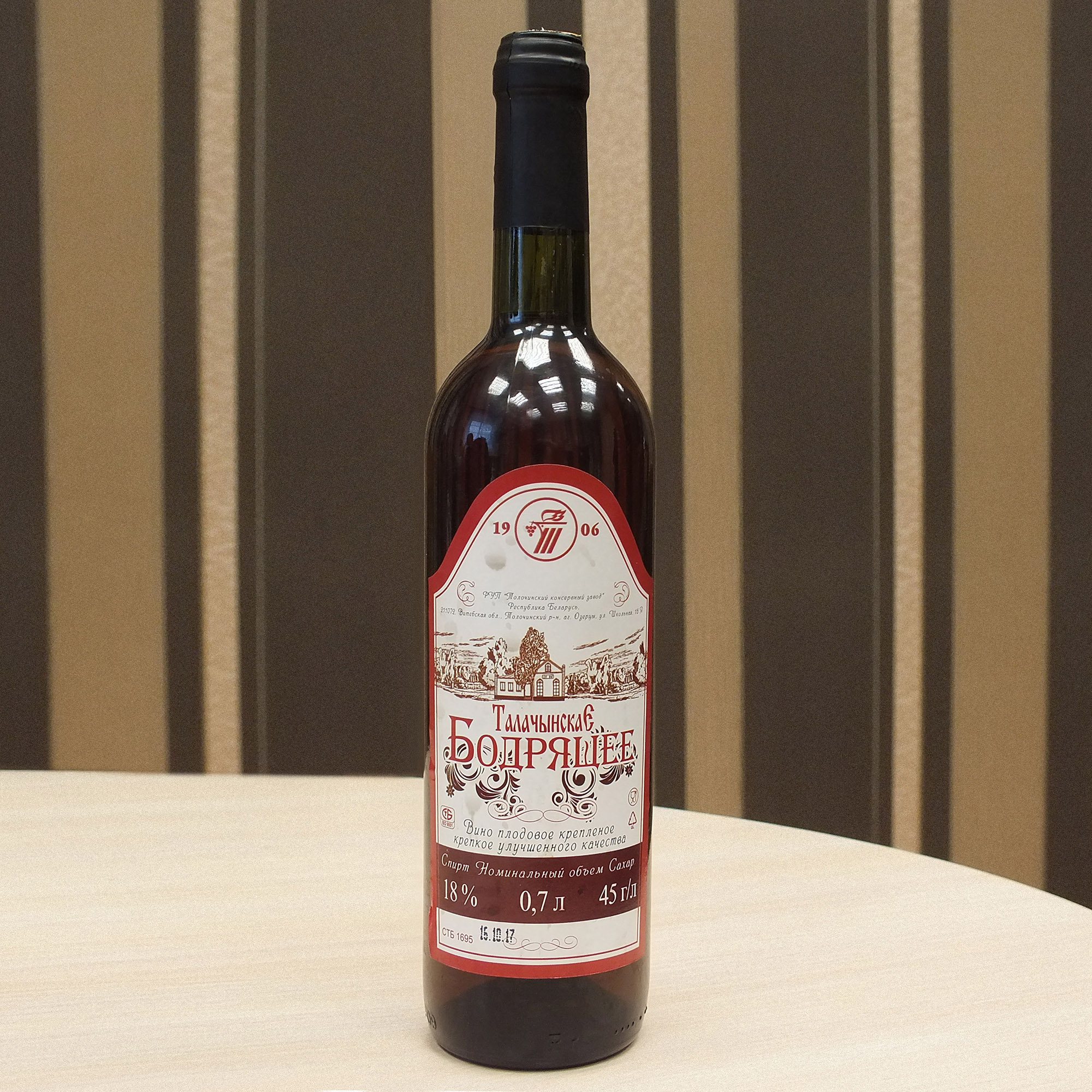 Спірт: 18% аб. Цукар: 45 г / л. Састаў: 85% яблычнага вінаматэрыялу, 5% чарнаплоднарабінавага вінаматэрыялу, 5% чорнапарэчкавага вінаматэрыялу, 5% агрэставага вінаматэрыялу.