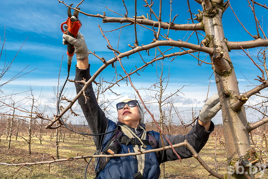 Десятки садоводов обрезают приземистые яблоньки: на плантациях предприятия вместе с весенним солнышком в эти дни максимально активизировались работы по посадке новых деревьев, уходу за молодняком и взрослыми растениями. Многочисленные кварталы (их тут называют именно так) убегают вдаль ровненькими аллеями. Штат подразделения — около 90 человек, но весеннюю формовку крон доверяют только самым опытным. Важно убрать лишние ветви, чтобы не перегрузить деревце, создать оптимальные условия для цветения и предоставить будущим плодам максимум солнца.