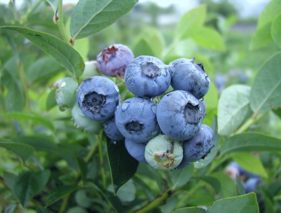The fruits are dark blue with a light waxy coating and a wide scar. They are spherical, slightly flattened, with greenish flesh with a slight pink tint, thin skin, and relatively firm flesh. This variety is recommended for fresh consumption.