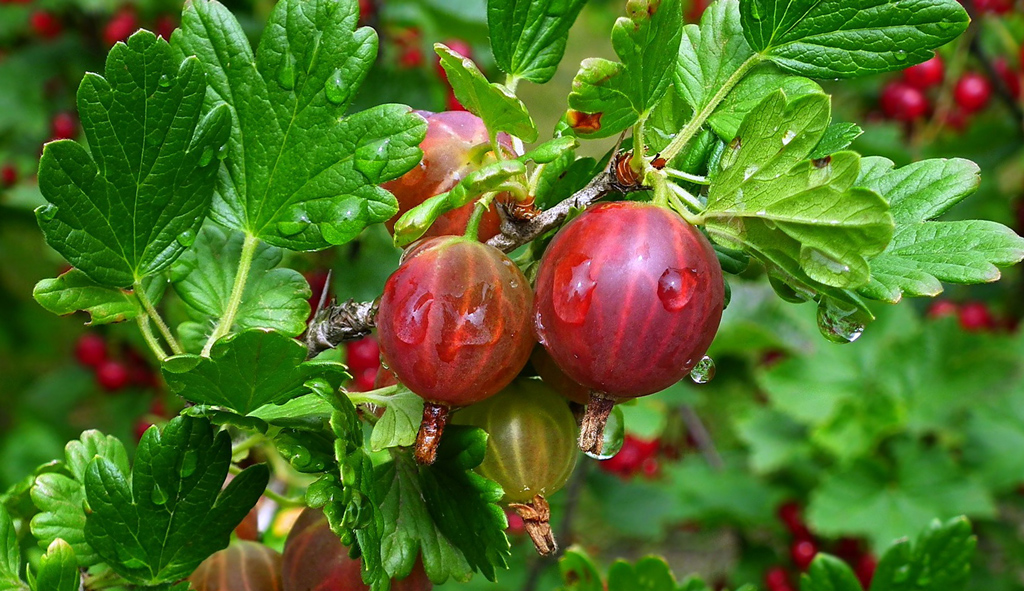 Gooseberry “Neslukhovsky” The berries are large, round-oval, and dark red. The skin is medium-thick, firm, and slightly pubescent. The flesh has a dessert-like flavor. Suitable for processing and fresh consumption.