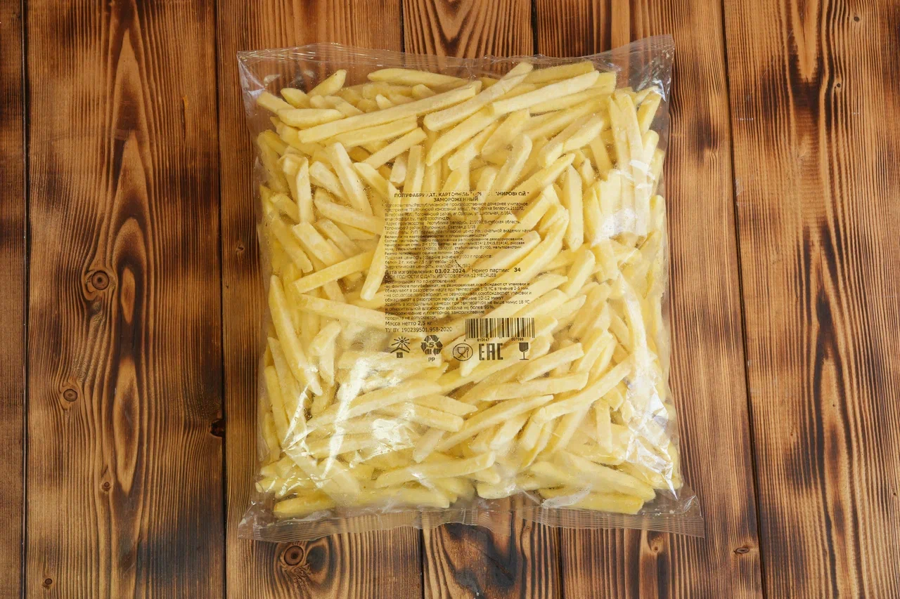 Semi-finished product. Frozen French fries with breading, 10×10 cross-section